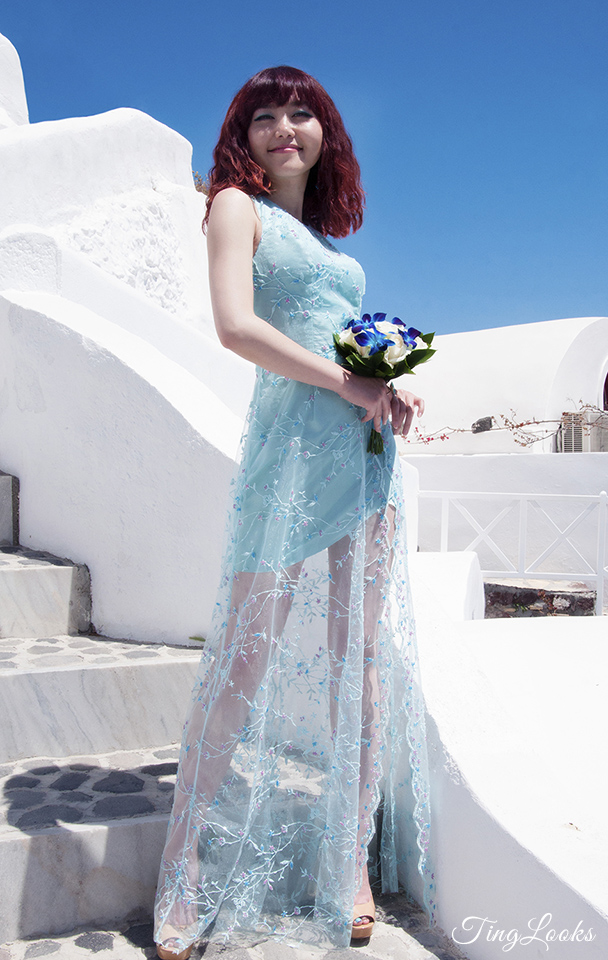 An anniversary dress inspired by heart-melted blue in Santorini, travelled with me from the east coast of Canada all the way to Greece. From design to sew, from styling to photo editing, I enjoyed every single moment in creating this look.